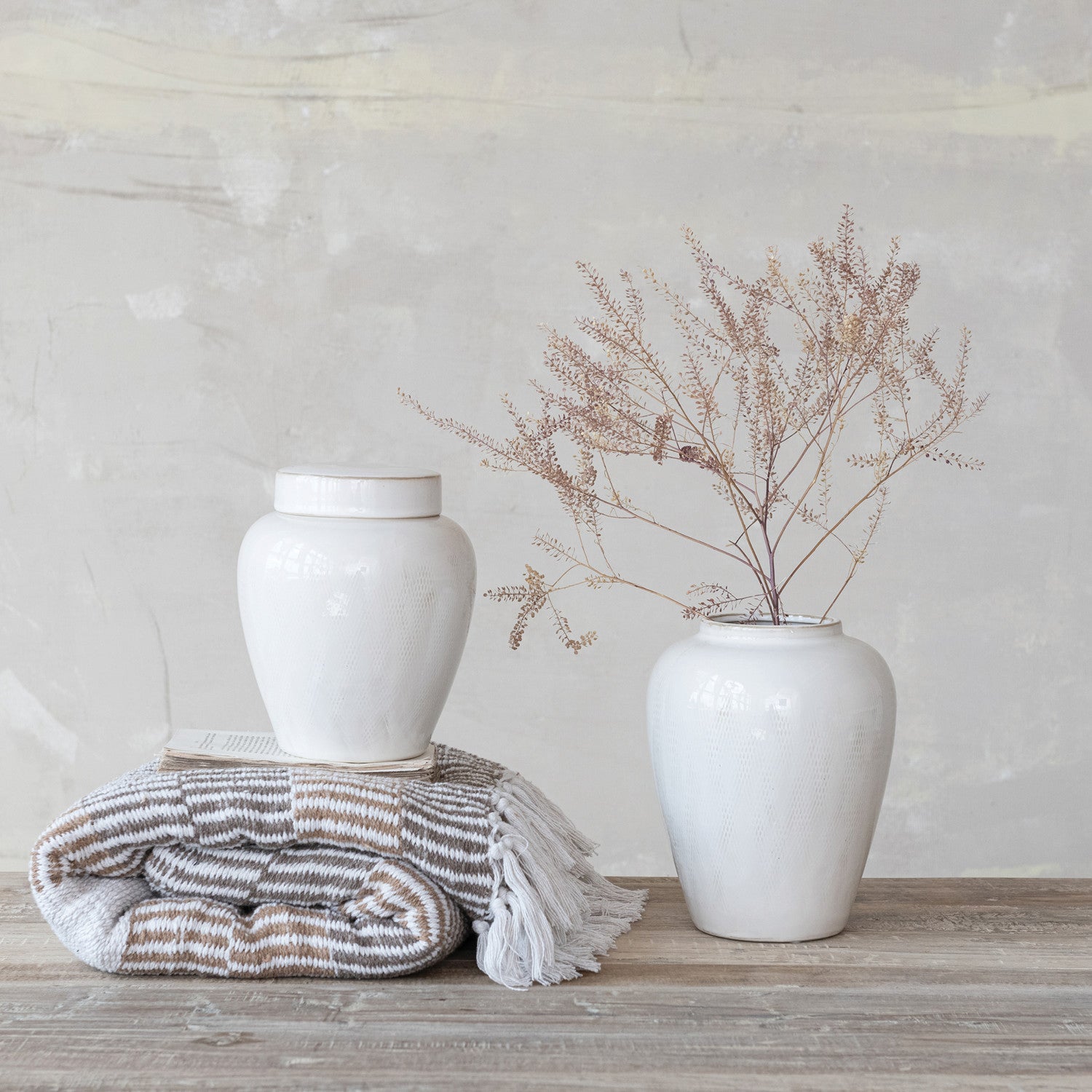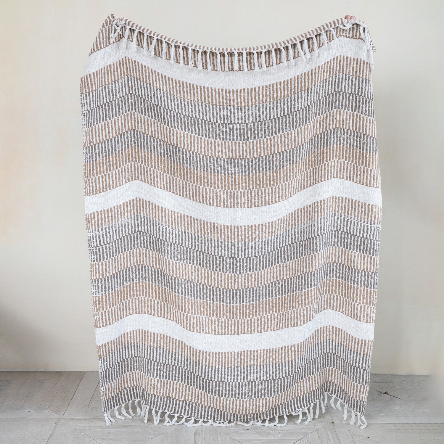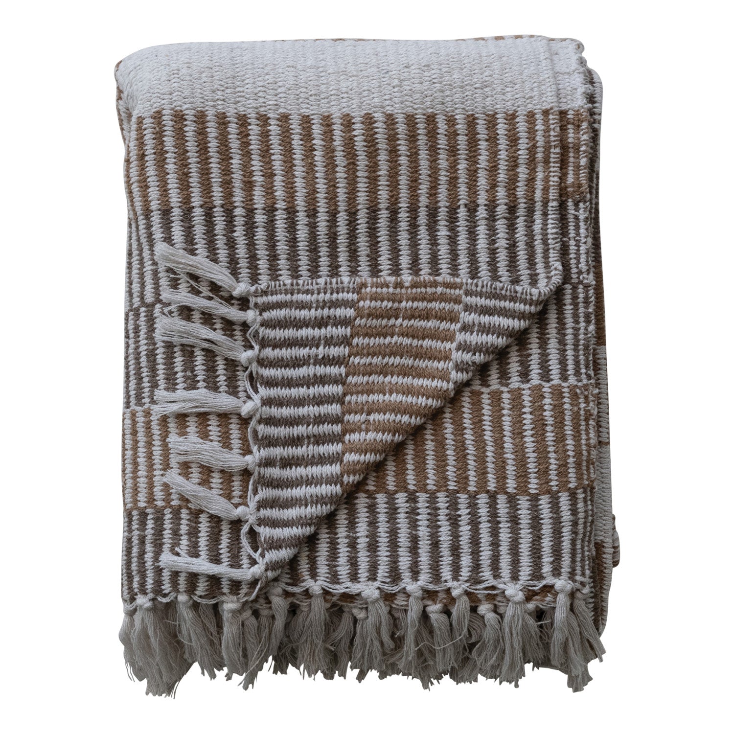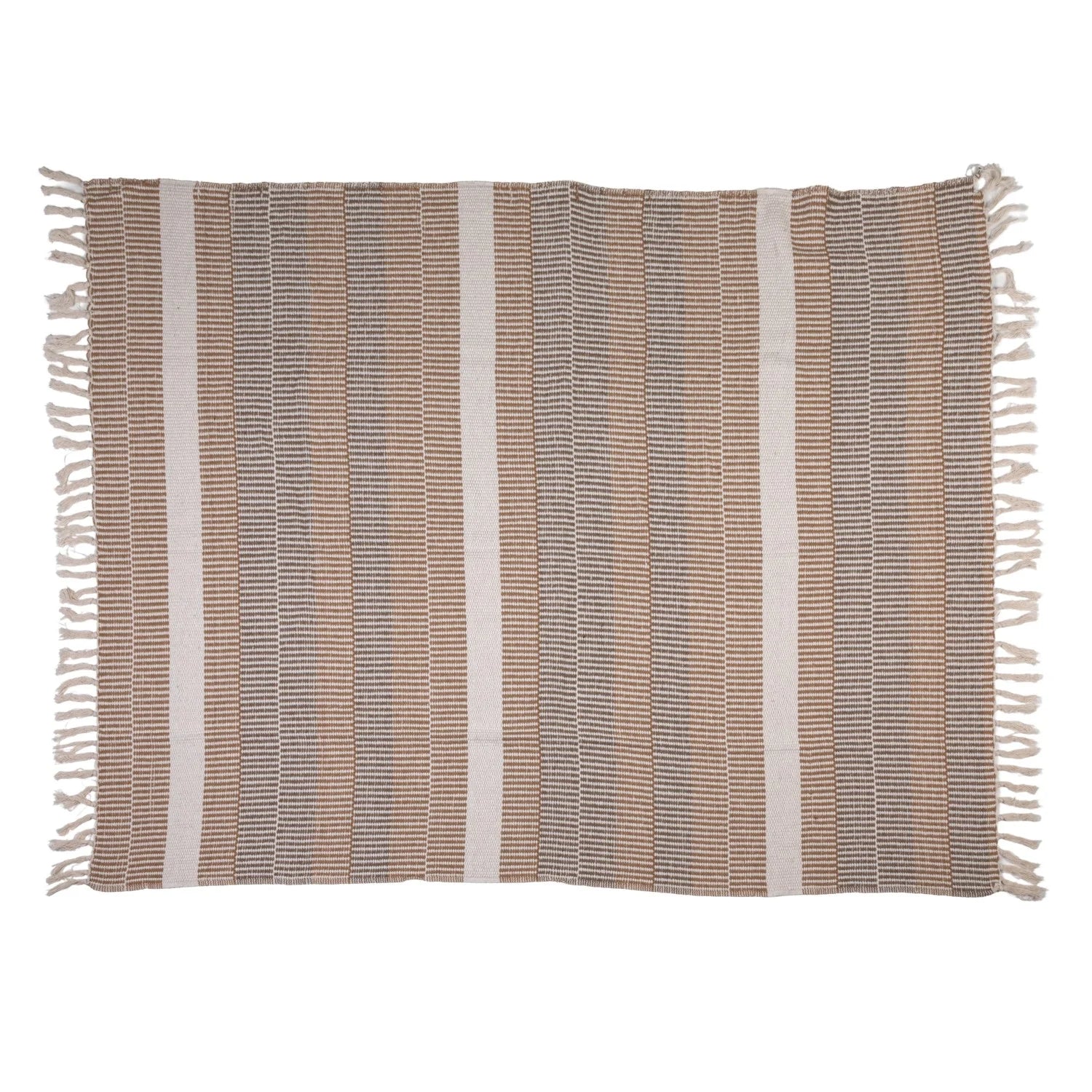 Woven Recycled Cotton Blend Throw with Stripes & Fringe