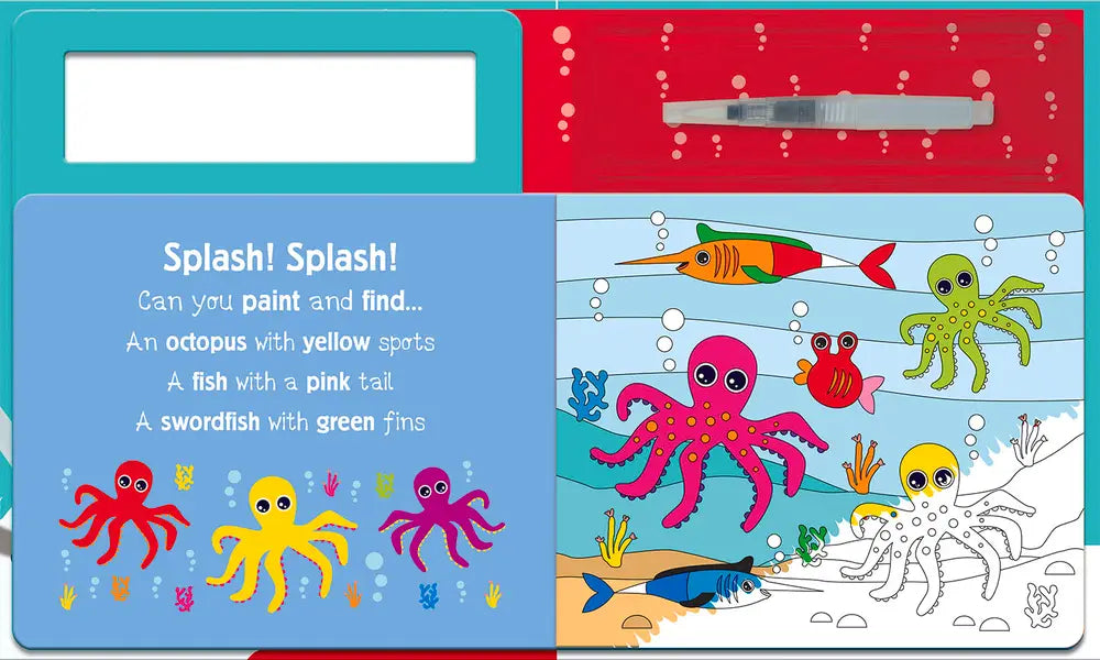 Board Book - Kids / Activity Books/Animals/Marine Life. Create colorful under the sea pictures with this water painting book, then search and find the things that are hiding on each page. Simply apply water with the special pen, leave to dry, then paint your pictures and search and find again.