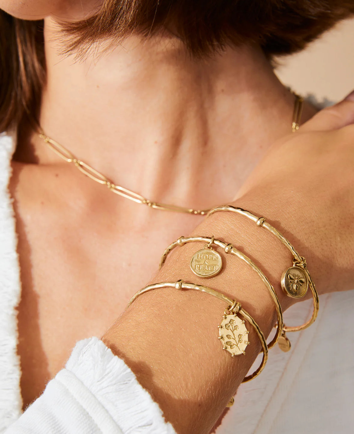 Collectible and delectable you will love stacking these Charming Cuff Bracelets. Featuring our Splash plating designed to shine through everyday wear, exercise, showers and a summer at the beach in tarnish free, water resistant 14kt gold vacuum plating over stainless steel.