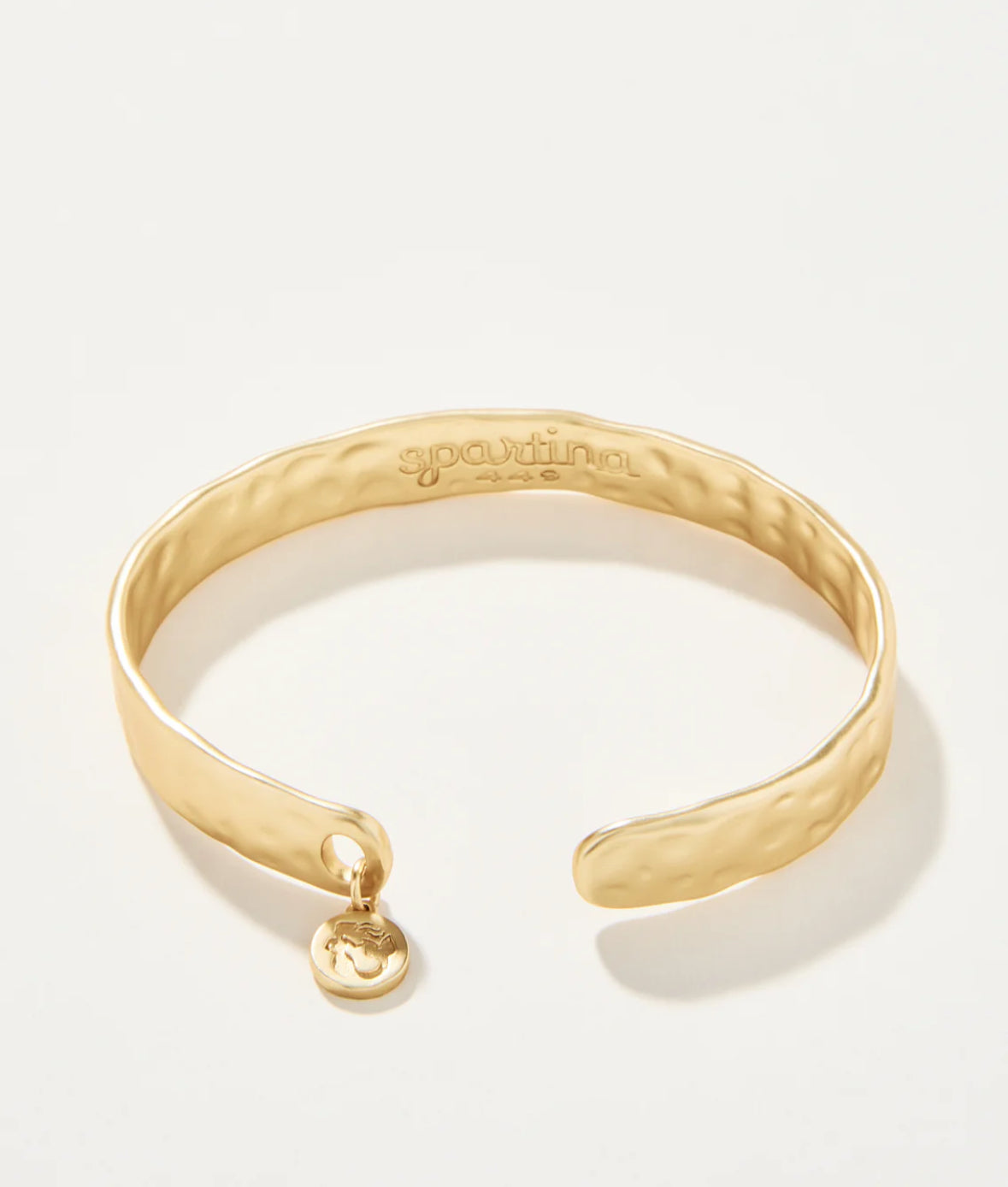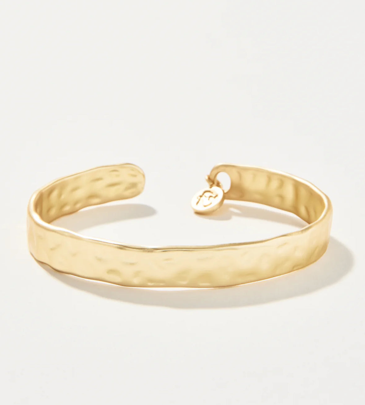 Your Lowcountry style shines through our Hammered Cuff in 18kt matte gold plating with luxe texturing. Gently bend to adjust fit.