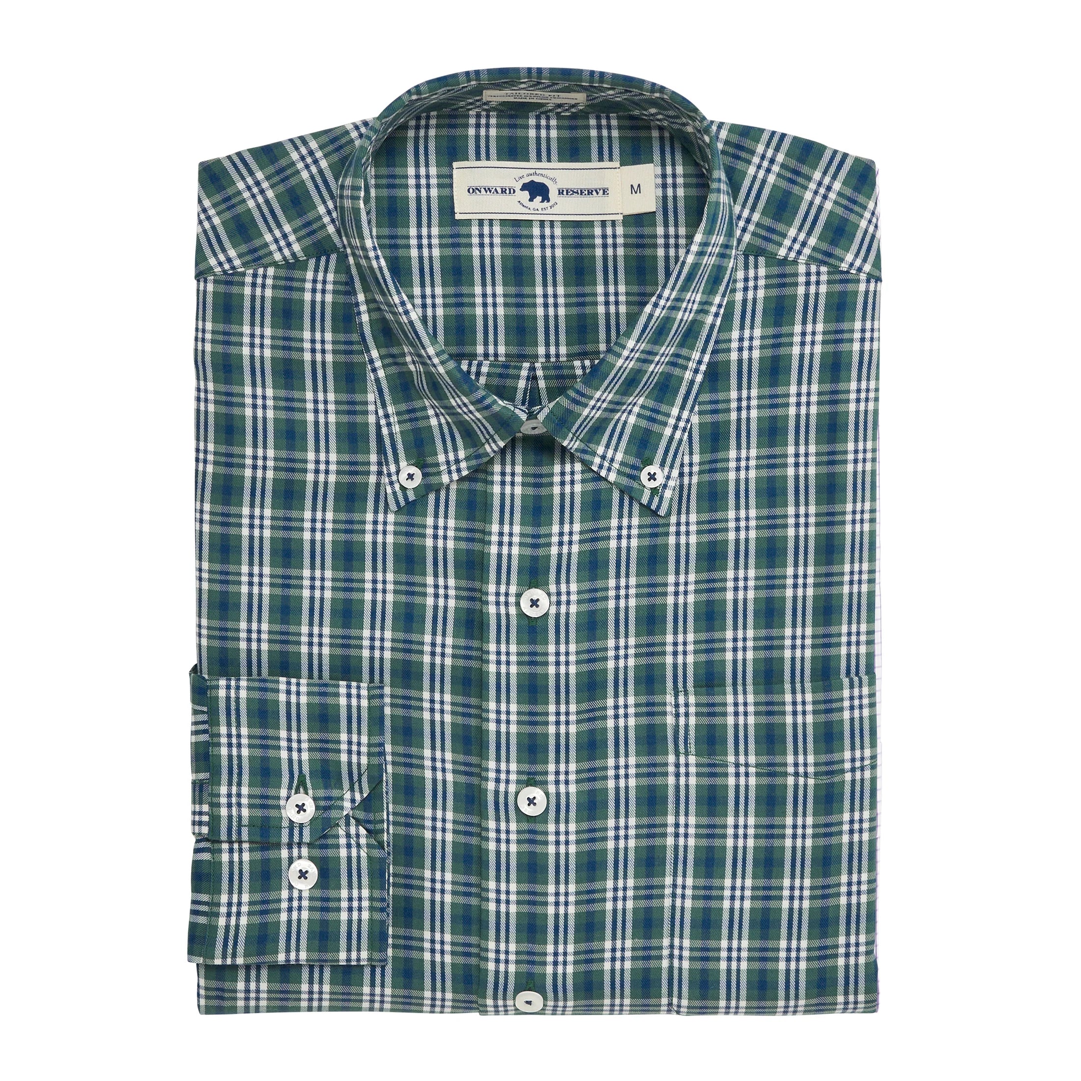 Tailored fit with a traditional plaid pattern. This button-down blends the soft woven texture of twill with all the benefits of a performance shirt. Quick drying and added stretch make this shirt versatile throughout the season.