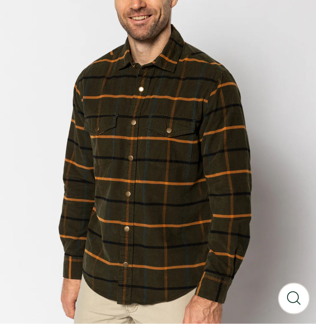 Corduroy Plaid Snap Shirt Bankston Plaid Deep Olive