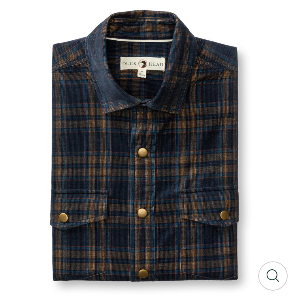 Corduroy Plaid Snap Shirt Cavern Plaid Maritime Blue