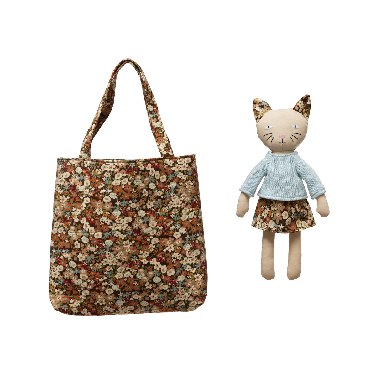 Take this friendly kitty with you everywhere you go in its matching tote.