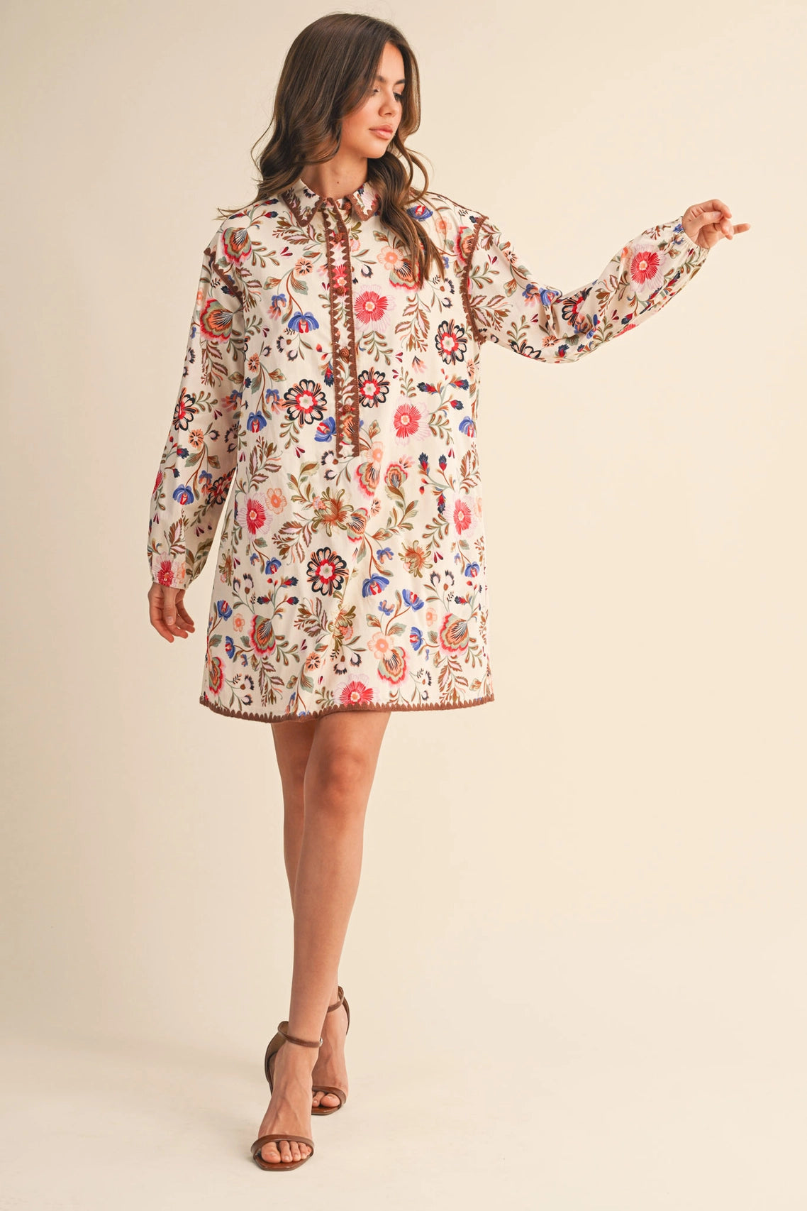• Half button down placket with contrast blanket triangle stitch + Long puff sleeves with elastic cuffs