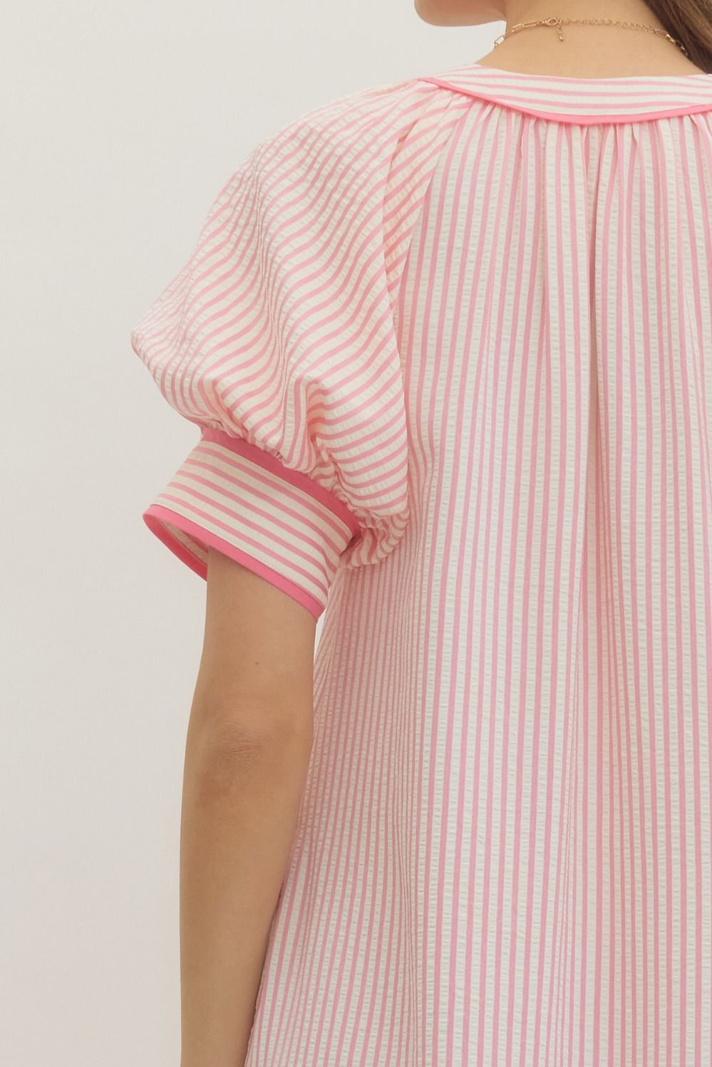 Pink Stripe Midi Dress w Floral Embroidery