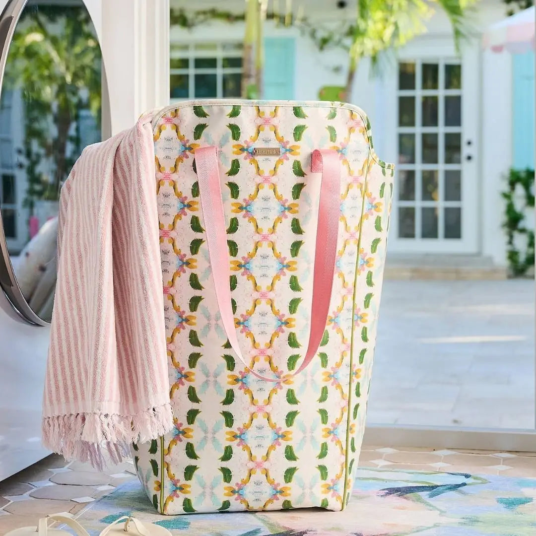 Make laundry day a little brighter with our Dogwood Laundry Bag. Designed in Laura Park’s signature abstract print, this roomy essential features a vibrant mix of green, pink, and yellow for a feel-good pop of color. Lightweight yet generously sized, it’s perfect for toting laundry, storing linens, or organizing on the go. -Top: 24" W x 24.75" h -Bottom: 11" W x 9" D -Handle: 11" Length -Shell: polyester canvas with vinyl coating -Lining: 70D / Man made material -Both shell and lining are water resistant. -Lining bottom can be removed for easy clean up.