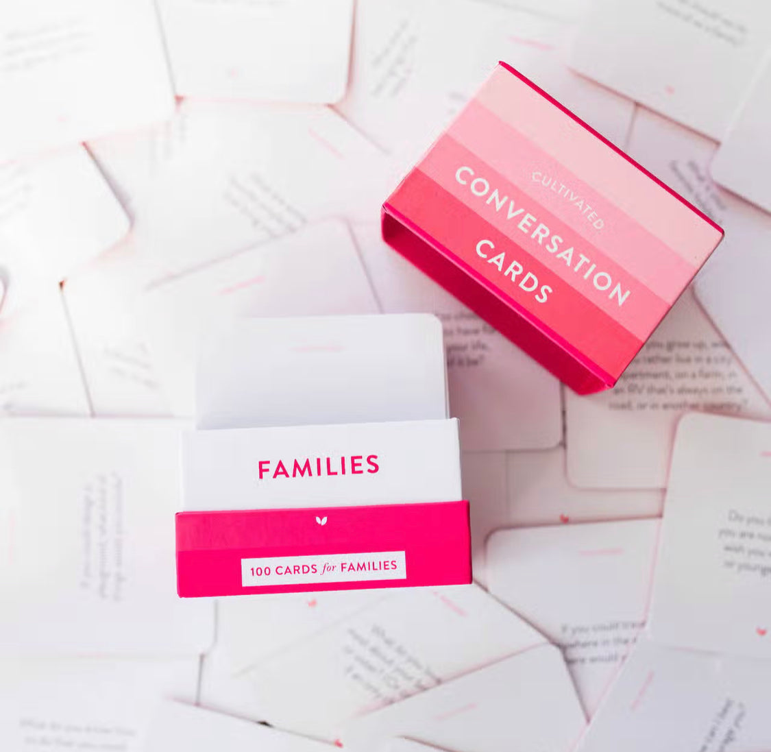 If you’ve ever wished you could slow down, hustle less, and enjoy your family more, these conversation cards are for you! Whether you use them around the dinner table, in the car on the way to school, at night before bedtime (or in another creative way!), thought-provoking questions on every card will help you cultivate a sense of love and belonging in your home and have fun doing it! In this deck, you’ll enjoy 100 family-centered conversation starters such as: * What are you looking forward to about being older? * What would you like me to do more/less of? * If you planned our next family vacation, where would we go, and what would we do? Cultivated Conversation Cards for Families are perfect for every type of family. We can’t wait to see how you use them in your home!