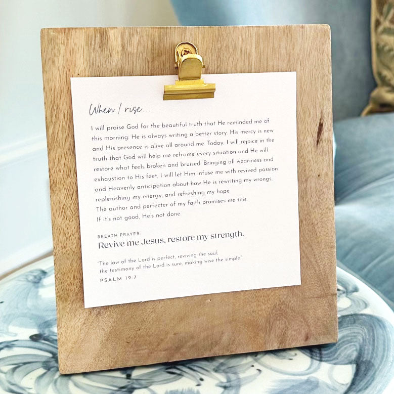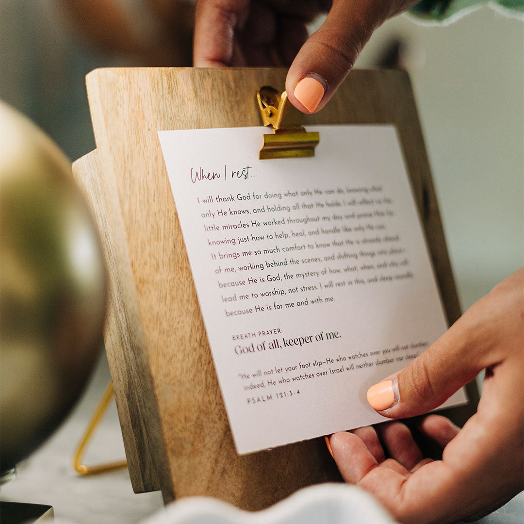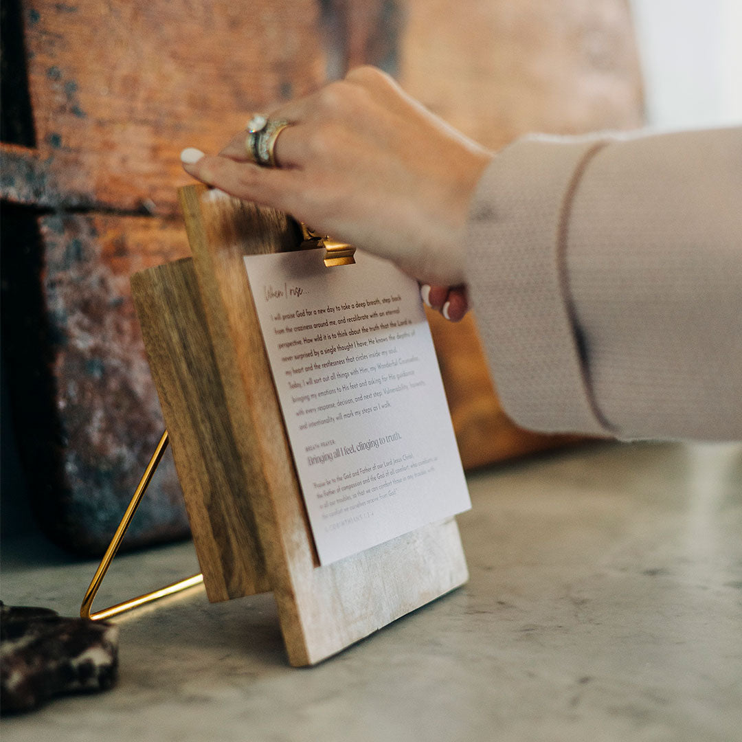 LWhat could change about your life if you prioritized getting before the feet of Jesus as your body prepared for the day and before you went to sleep? Before the world tells you what your headlines are, let His hope write them for your day. Before the world attempts to sing an anxious lullaby, let His kindness help you rest. This set contains 30 cards with a devotion, scripture, and breath prayer for each morning and evening. Devotion: Reflect on who Jesus is and who He will be today Scripture: Foundational truth to stand on (rise) and sleep on (rest) Breath Prayer: Activation language for your soul, easy to repeat throughout the day and in stressful moments Details: —Size: 5" x 5" —30 cards with devotions, scriptures, and breath prayer printed on the front and back