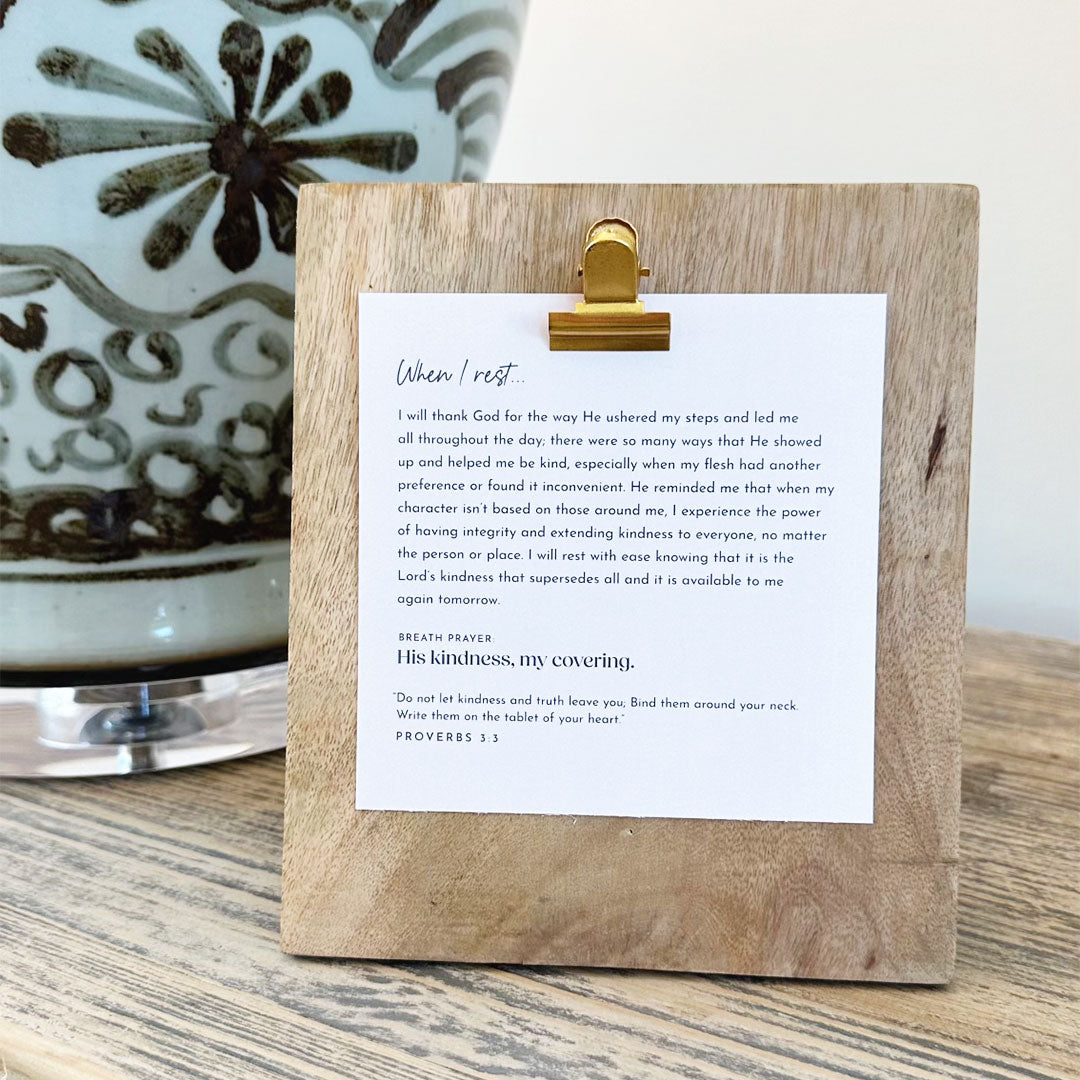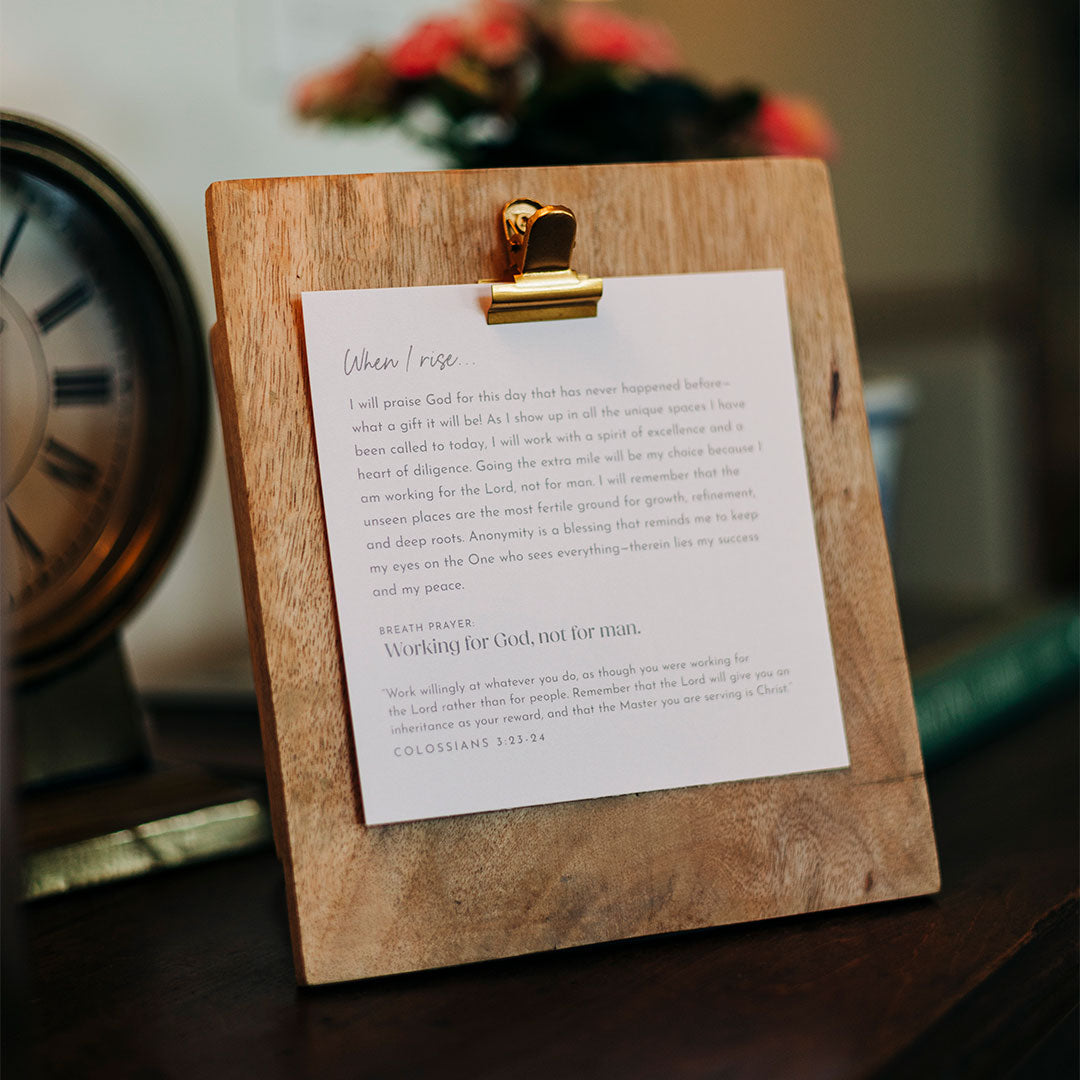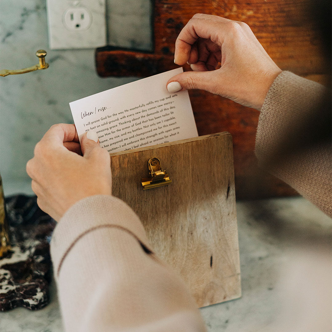 LWhat could change about your life if you prioritized getting before the feet of Jesus as your body prepared for the day and before you went to sleep? Before the world tells you what your headlines are, let His hope write them for your day. Before the world attempts to sing an anxious lullaby, let His kindness help you rest. This set contains 30 cards with a devotion, scripture, and breath prayer for each morning and evening. Devotion: Reflect on who Jesus is and who He will be today Scripture: Foundational truth to stand on (rise) and sleep on (rest) Breath Prayer: Activation language for your soul, easy to repeat throughout the day and in stressful moments Details: —Size: 5" x 5" —30 cards with devotions, scriptures, and breath prayer printed on the front and back