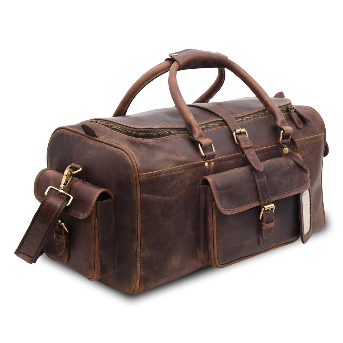 Our classic floyd duffle bag is handmade from the finest full-grain indian buffalo leather and features a fabric-lined interior with antique brass hardware for a flawless finish. The horseshoe-shaped opening design is both refined and practical offering easy access to the spacious main compartment, one internal zipped pocket and three external buckle closure pockets offer plenty of space to organize your essentials.