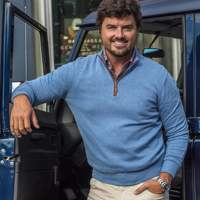Our best-selling sweater is back and better than ever... With a new and improved cotton and Merino Wool blend and classic suede details. Wear it with a pair of Five Pockets or under a sport coat. The Jackson 1/4 Zip is a lightweight layer that never goes out of style.