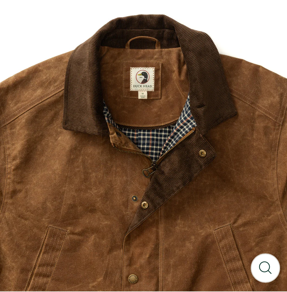 In 1865, Duck Head was born when our founders turned durable army tent canvas—known as duck cloth—into hardworking garments. Today, we carry on that legacy as the “Original Canvas Clothier” with the Waxed Duck Canvas Jacket. A durable, water-resistant wet wax finish with a coated backing ensures dependable use and develops a rich patina right from the start and stands up to the toughest elements. Flannel-lined with a corduroy collar and bellow flap pockets, this jacket is built for lasting durability and warmth.