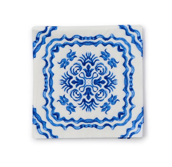 BLUE TILE BLOCK PRINT 3-PLY PAPER COCKTAIL NAPKIN