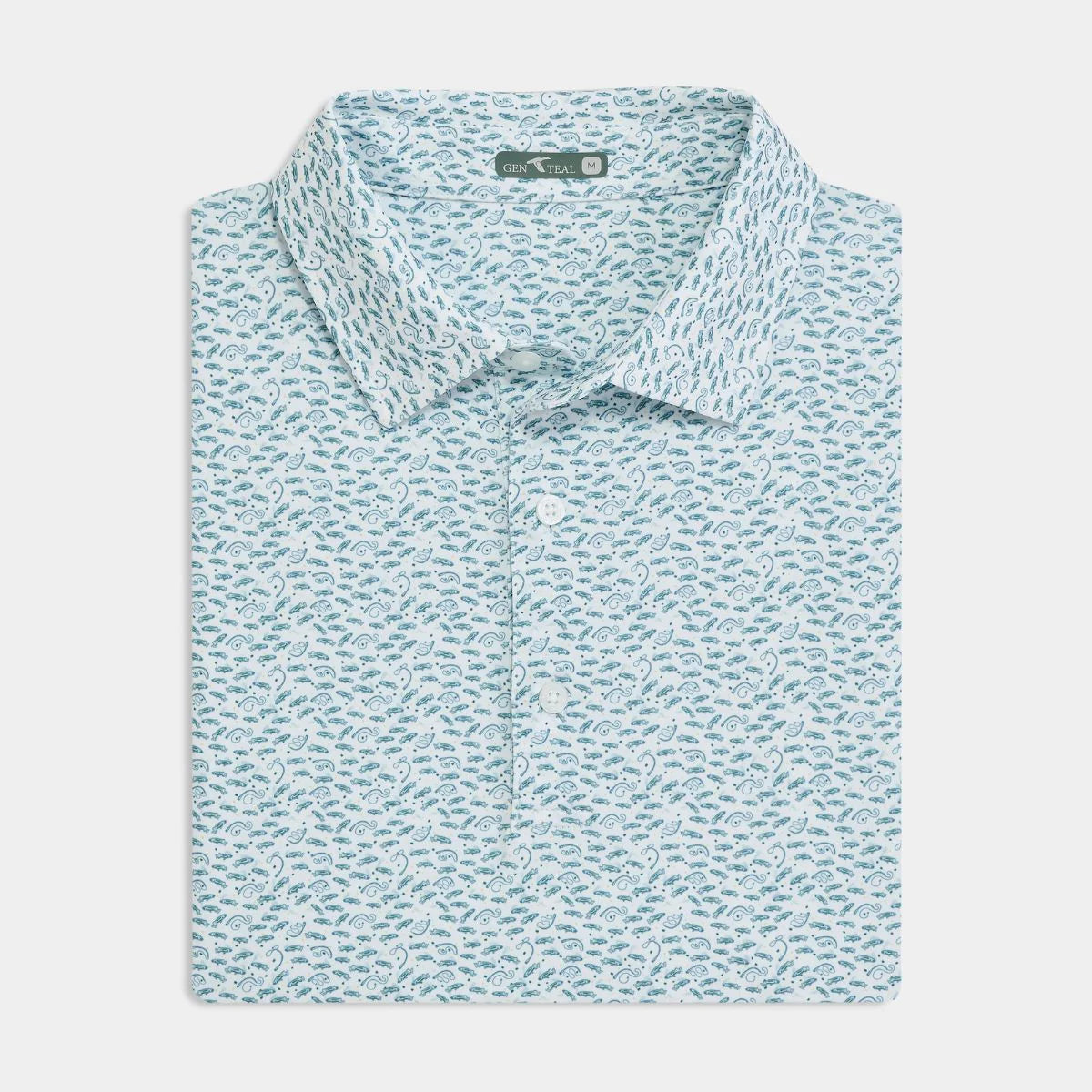 The Catch and Release Polo features a print of fishing reels and fish and is crafted from our signature moisture-wicking performance fabric with just the right amount of stretch. Designed to keep you cool, dry, and comfortable whether you’re casting lines or swapping stories.