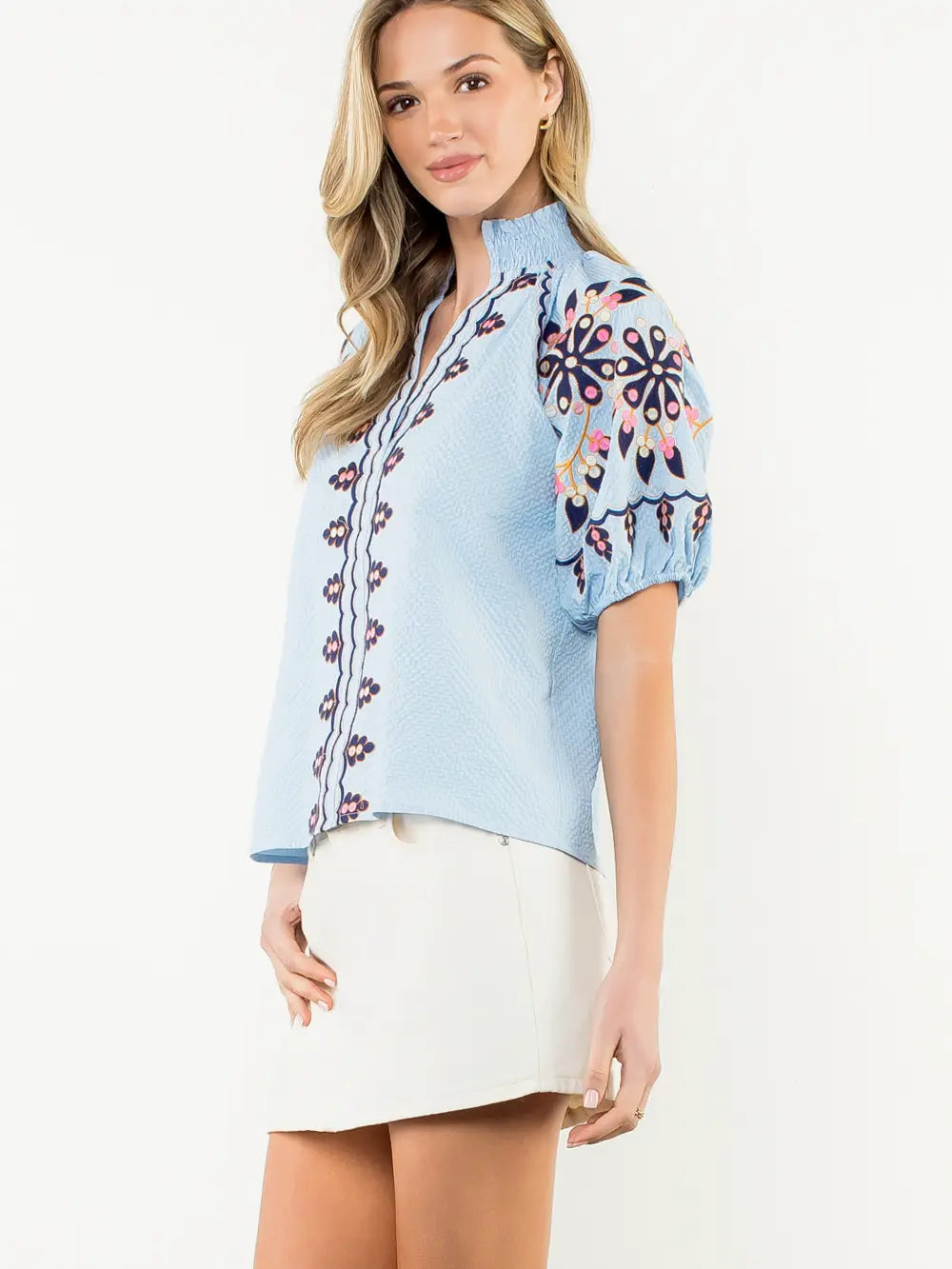 Embroidered Puff Sleeve Textured Top 𝐒𝐭𝐲𝐥𝐞 𝐌𝐞𝐚𝐬𝐮𝐫𝐞𝐦𝐞𝐧𝐭𝐬 𝐟𝐨𝐫 𝐒𝐢𝐳𝐞 𝐒 • Designed in USA • Body Length: 24 in • Bust Width: 43 in • Sleeve Length: 15 1/2 in 𝐌𝐨𝐝𝐞𝐥 𝐒𝐢𝐳𝐞𝐬 • Wearing Size S • Height 5' 9", Bust 32", Waist 25 1/2", Hips 36" 𝐏𝐫𝐞𝐩𝐚𝐜𝐤 𝐂𝐨𝐧𝐭𝐞𝐧𝐭𝐬 • In a Pack of XS(1), S(2), M(2), and L(1) per Color Only 𝐅𝐚𝐛𝐫𝐢𝐜 𝐂𝐨𝐧𝐭𝐞𝐧𝐭 • Woven / 100% Polyester