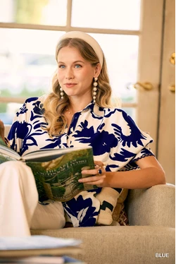 Bold Floral Print Button-Up Blouse