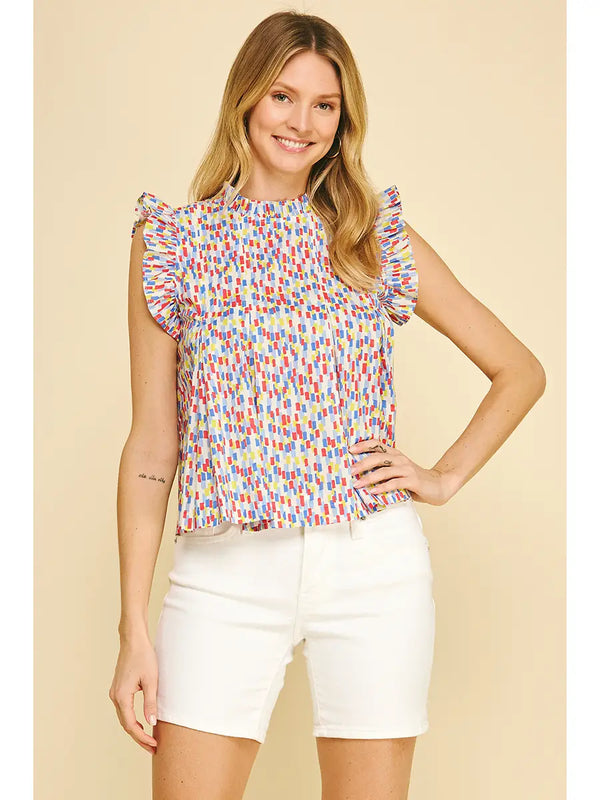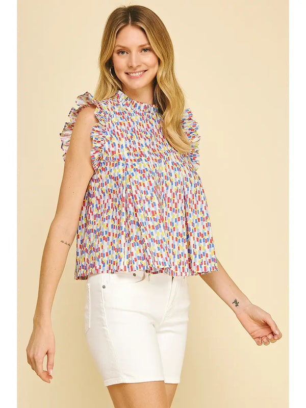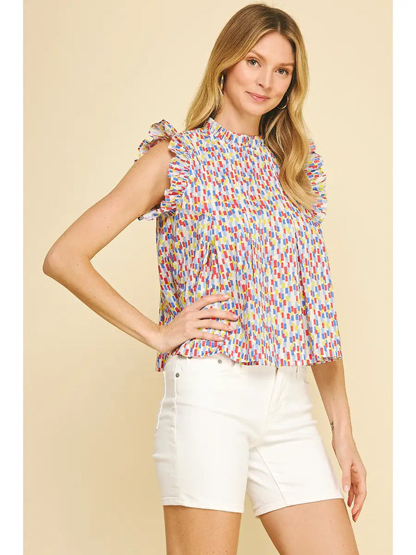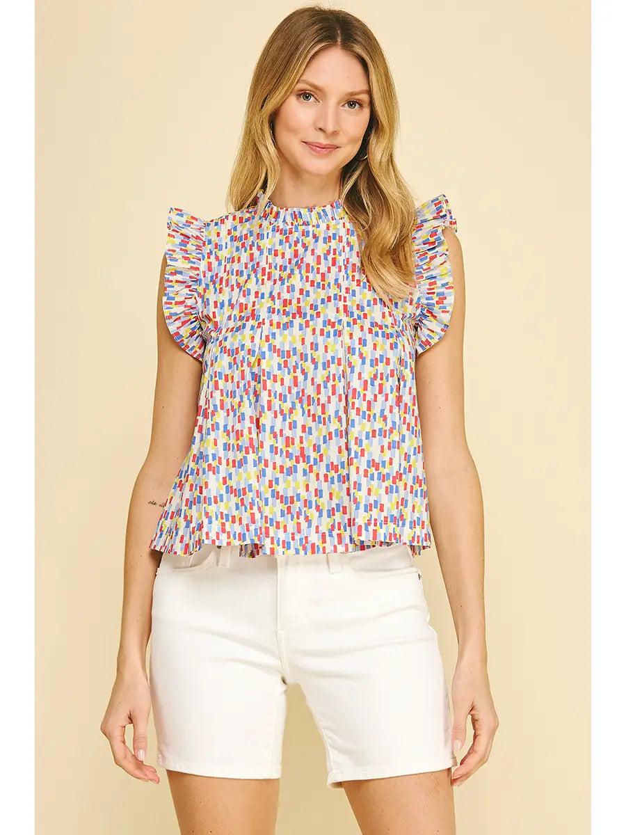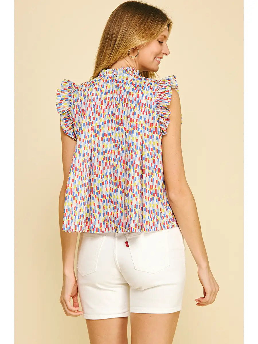 Multi Color Ruffled Sleeve Blouse Top