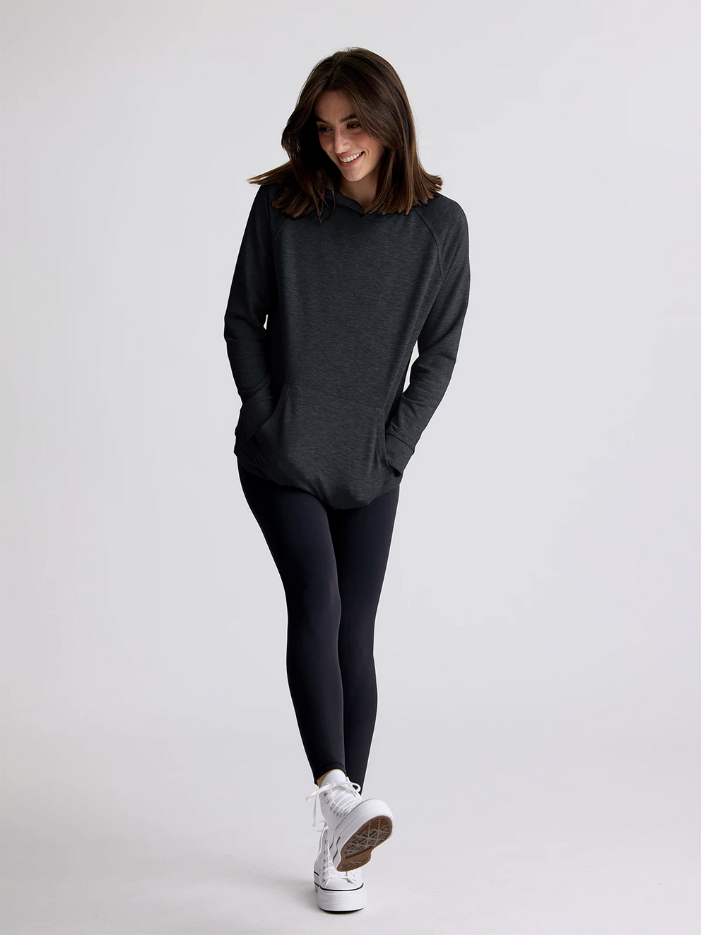 Diving head first into a pile of clouds. That’s what this Lightweight Fleece Hoodie feels like. Unreasonably soft. Incredibly lightweight. The brushed fleece interior feels like a fluffy, cashmere blanket, while built-in stretch moves with you—topped off with a cozy, three-piece hood and convenient kangaroo pocket. Wear it with our matching Lightweight Fleece Joggers when you’re getting comfy for long-haul travel, or pair it with our All Day Legging when you’re headed to and from the gym.