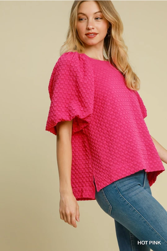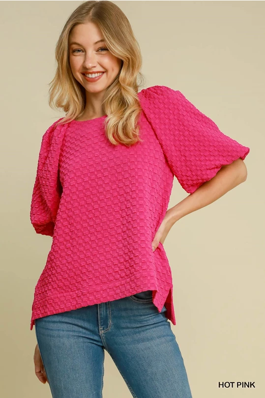 Jacquard Round Neck Top: Hot Pink