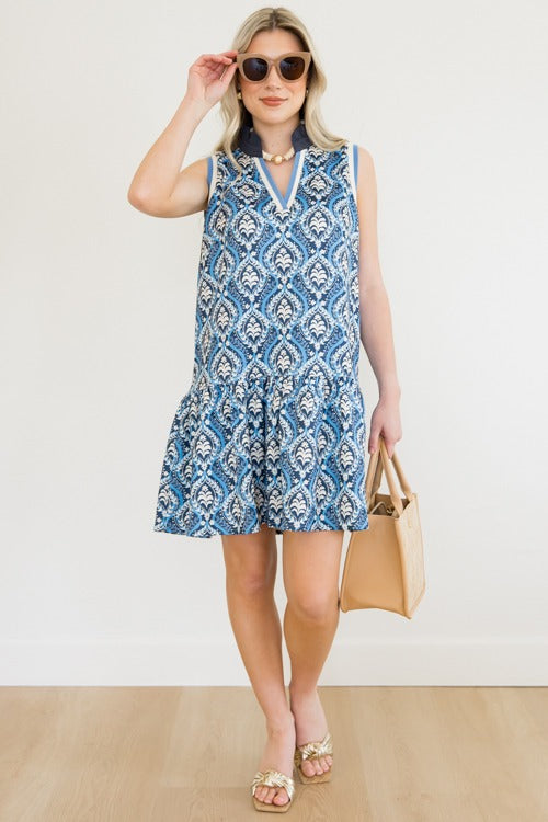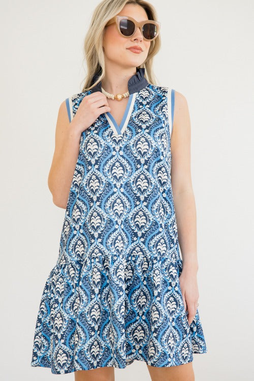 Navy Vibrant Sleeveless Ruffle Collar Dress