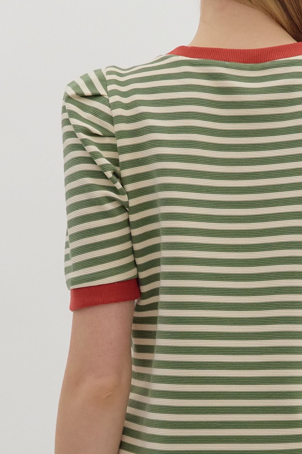 Olive Stripe Short Sleeve Top