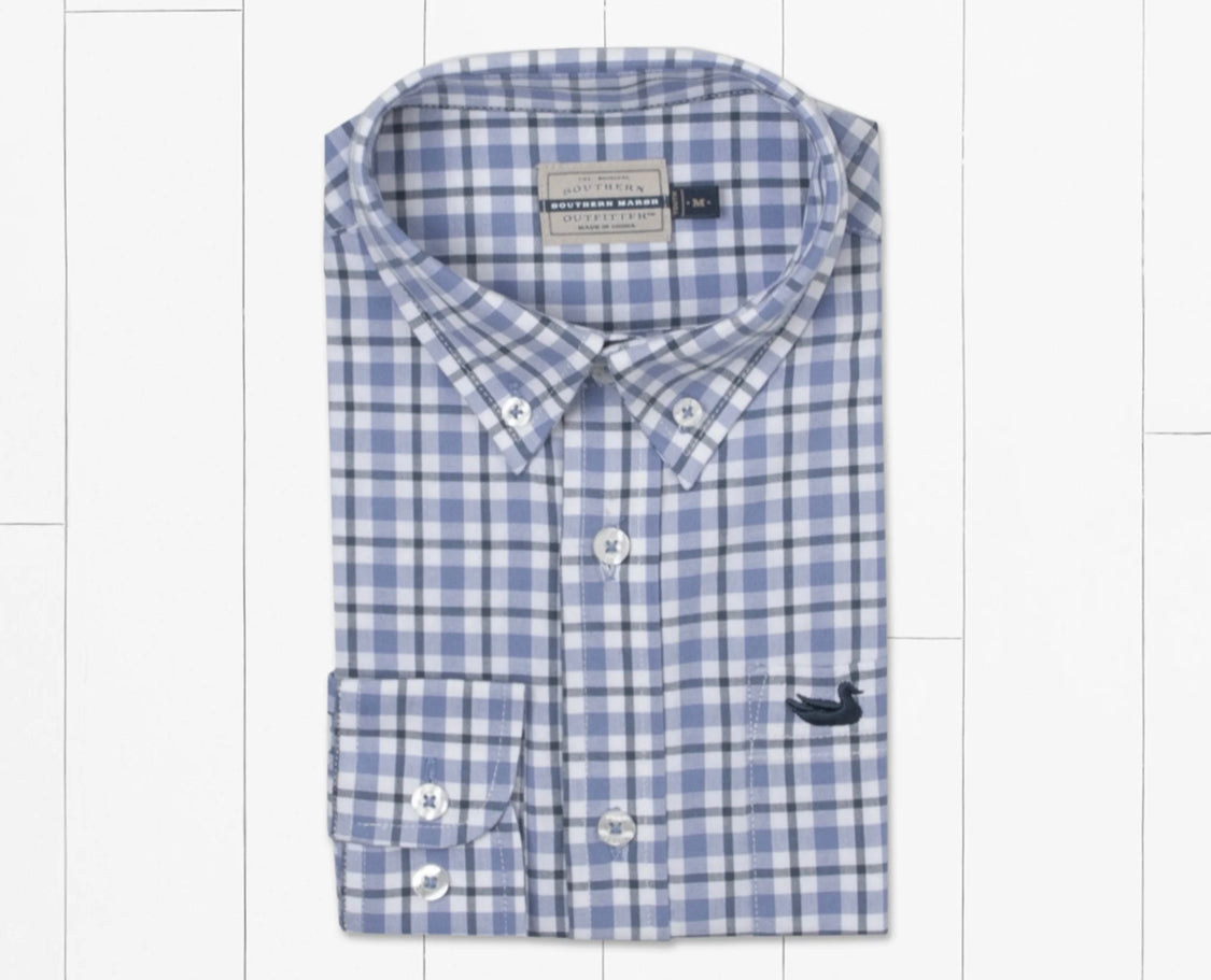 Youth Oak Grove Washed Gingham Dress Shirt: French Blue and Navy