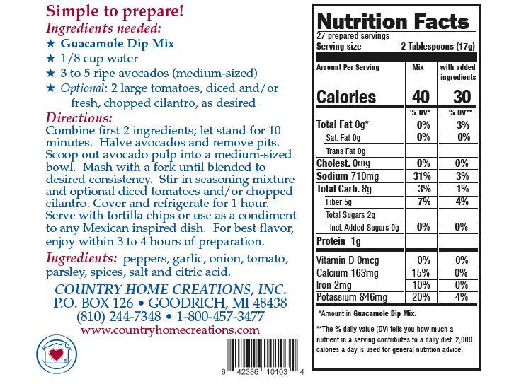 This all-natural blend of herbs and spices will take the guess work out of making a delicious Guacamole! Perfect for any party, the big game or Cinco de Mayo, you and your guests will easily make this your favorite Guacamole. Just add water and mashed avocados to create a deliciously nutritious snack or condiment to any Mexican inspired dish.