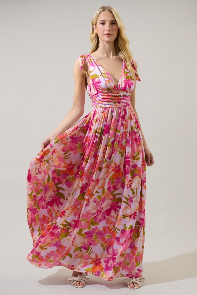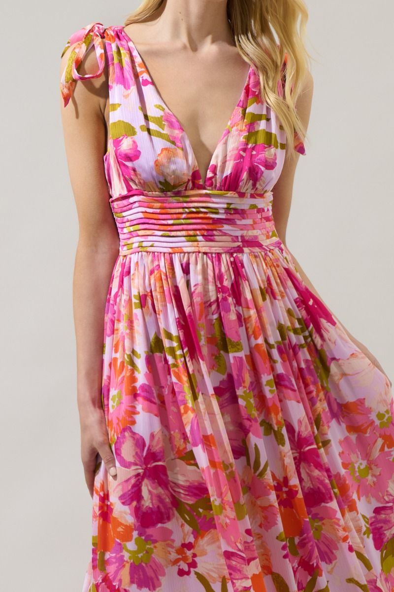 Make a great impression when you have the Abigal Floral Descanso Pleated Maxi Dress! Ruched shoulders top a ruched, plunging V neckline. A pleated flat waistband creates a cinched waist and sits atop an ethereal, gathered maxi skirt. Add on some strappy heels to match this gorgeous dress!