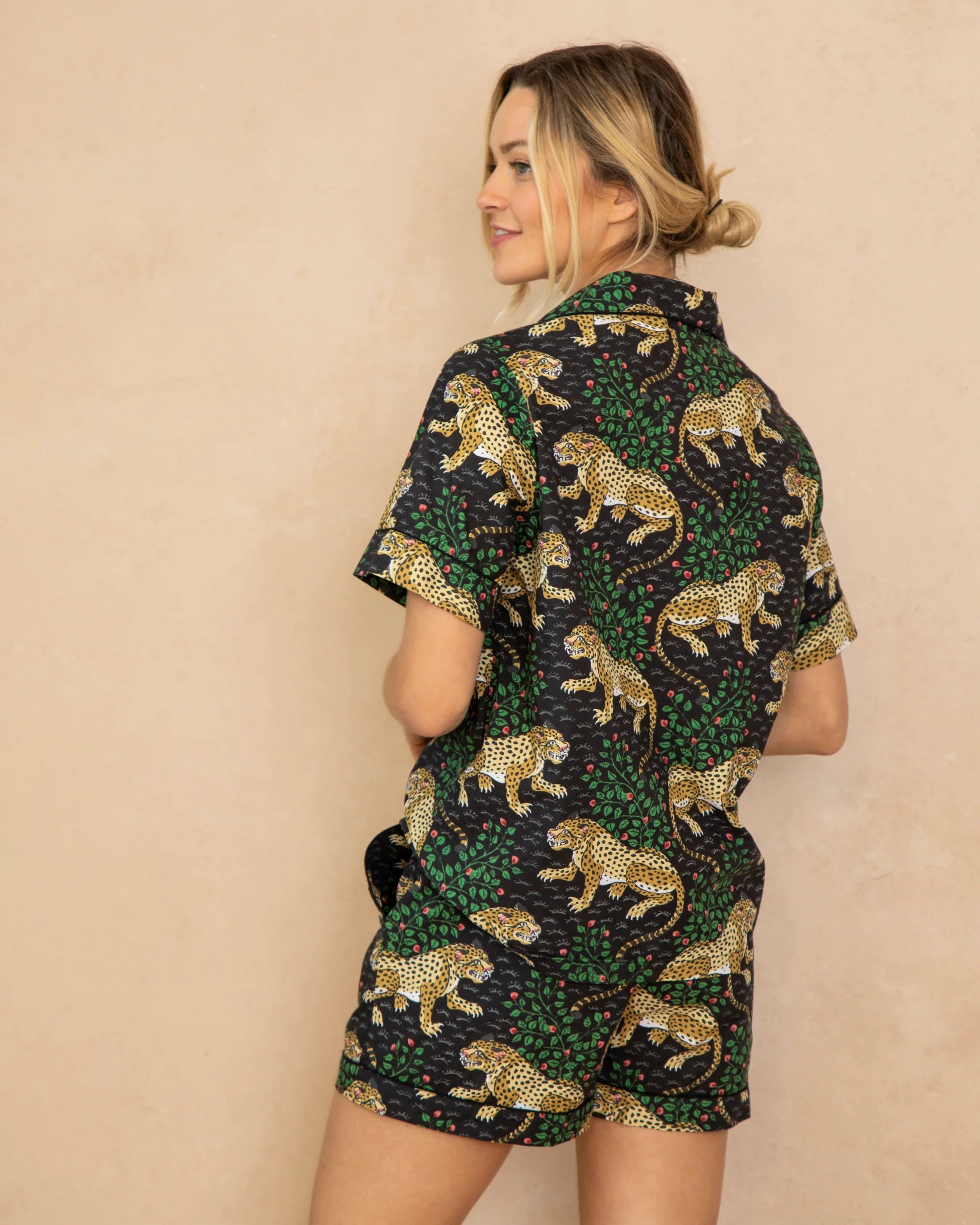 • Pajamas in all black, what could be better? The short sleep set of your Bagheera dreams.