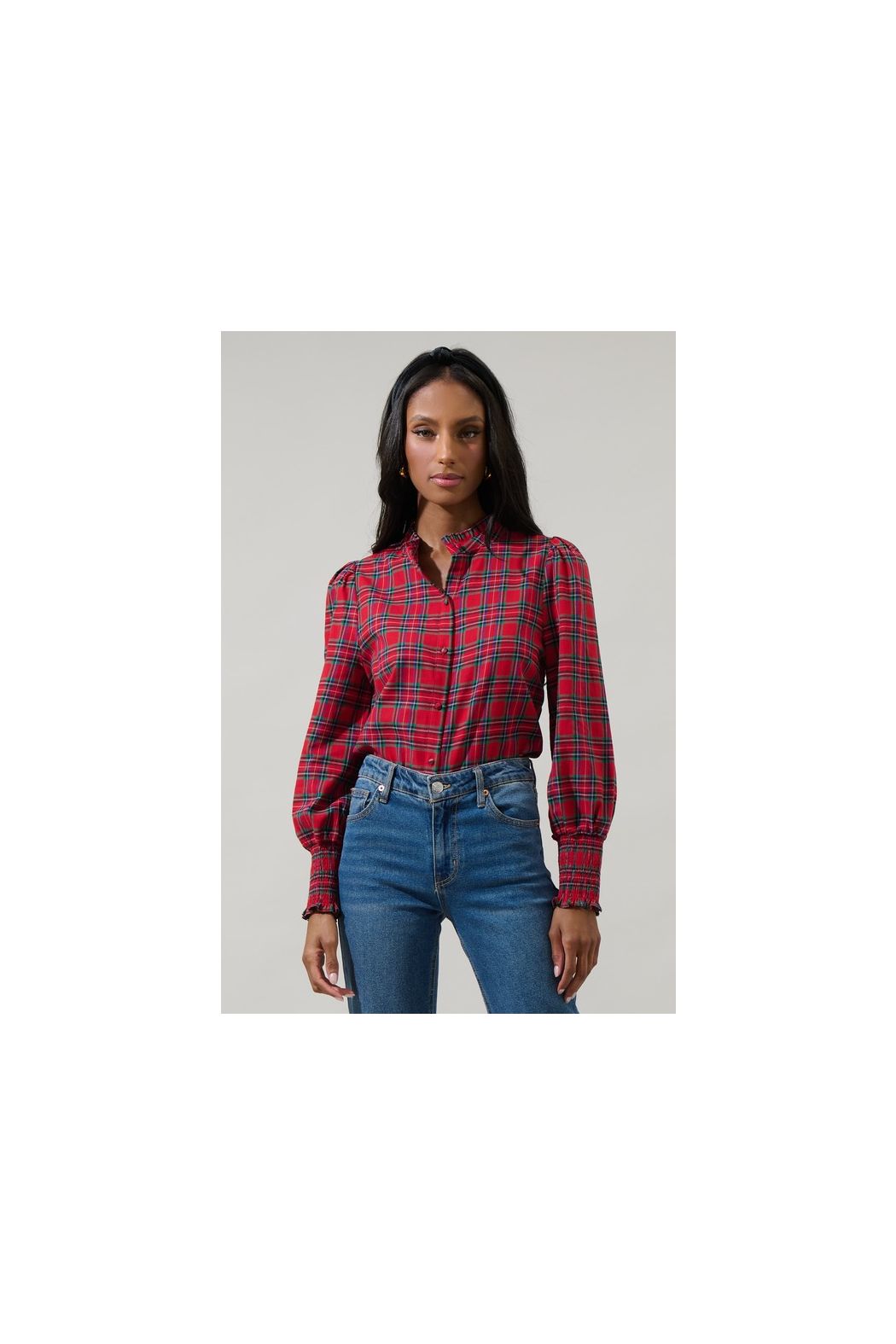 For the cooler days, the Chapman Plaid Split Neck Top, is got you covered! Long, slightly puff sleeves feature smocked cuffs along with a button down feature to wear as mock neck or unbutton down for a more open style. Wear this top tucked in or out with jeans and booties to complete your look