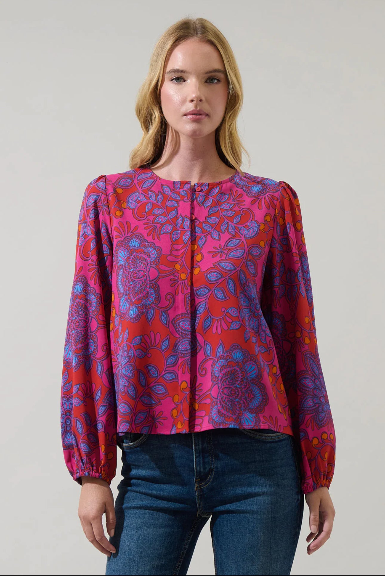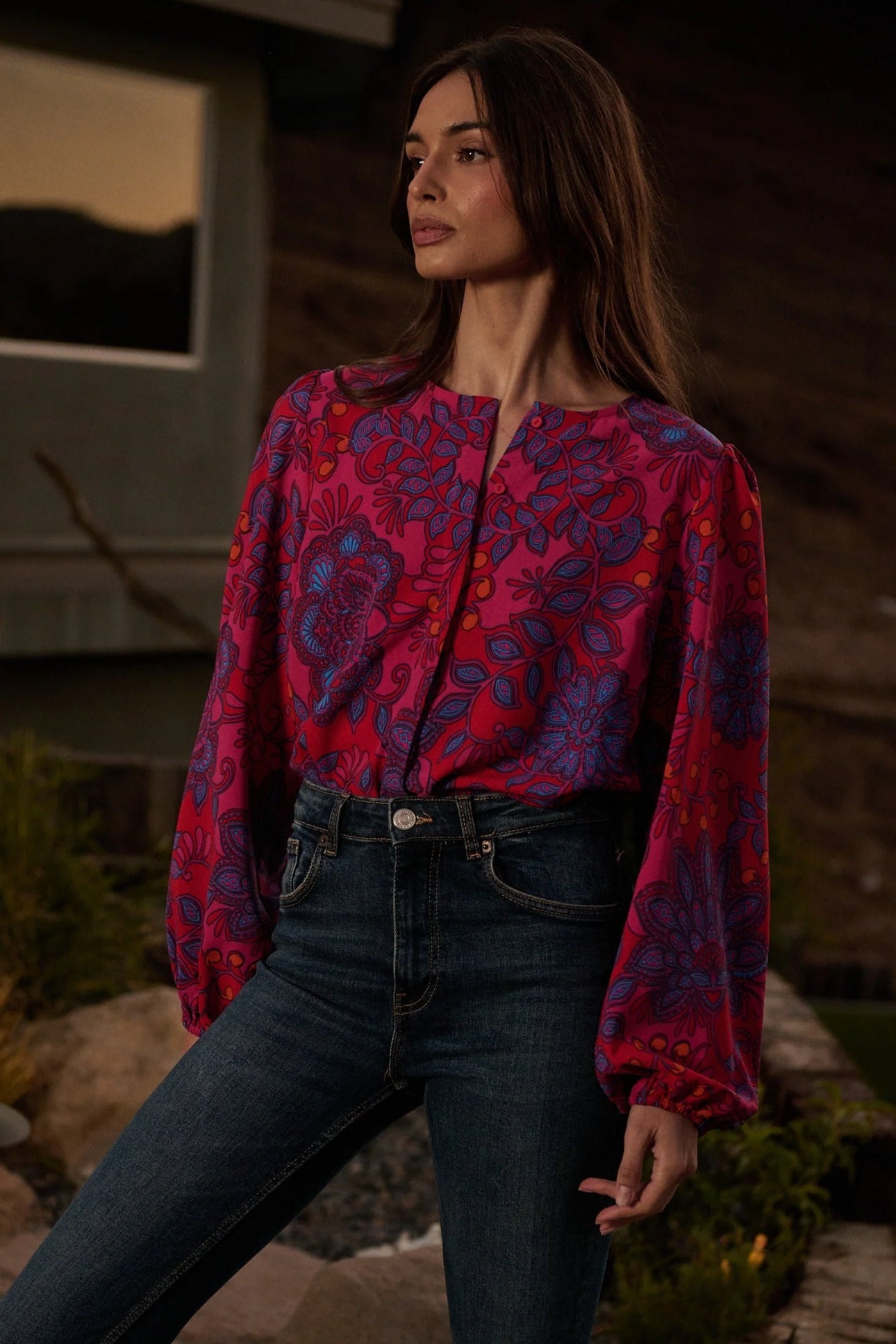 Add a splash of vibrant charm to your wardrobe with this blouse. It features soft puff sleeves and a relaxed fit for effortless style and comfort. Perfect for pairing with jeans, skirts, or tailored pants, this versatile piece takes you from casual outings to chic evenings with ease.