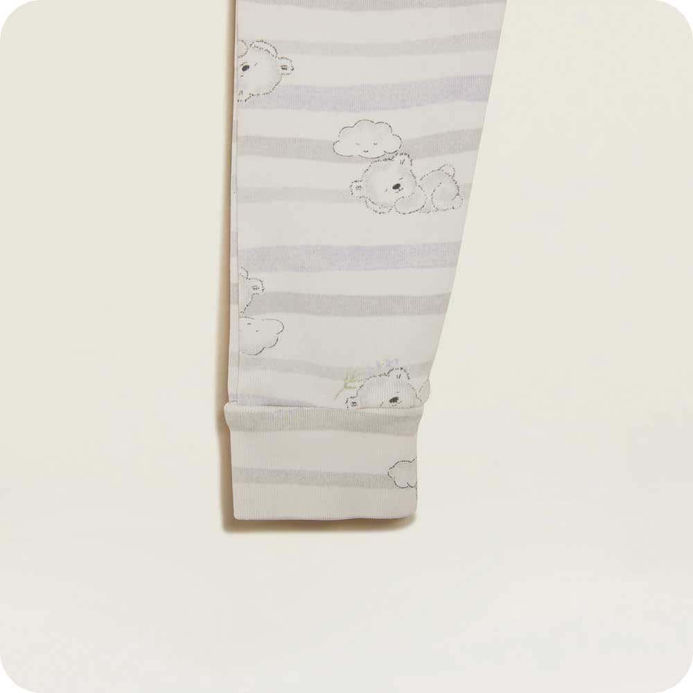 Warmies pajamas are made for stylish, soothing comfort at bedtime, designed with calming hues in a 100% cotton fabric that gets softer with every wash. The ribbed pajama set features a stretch elastic waistband, ensuring they remain securely in place, and the Warmies label is printed directly on the fabric to avoid the irritation of traditional scratchy tags.