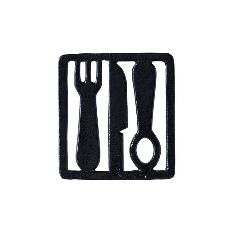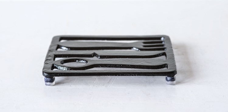 6-1/2"L x 6"W Cast Iron Silverware Trivet, Black