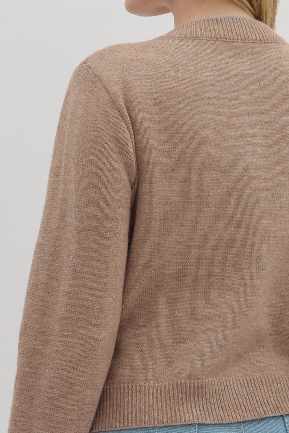 Mocha Knit Cardigan Jacket with Blue Attached Layered