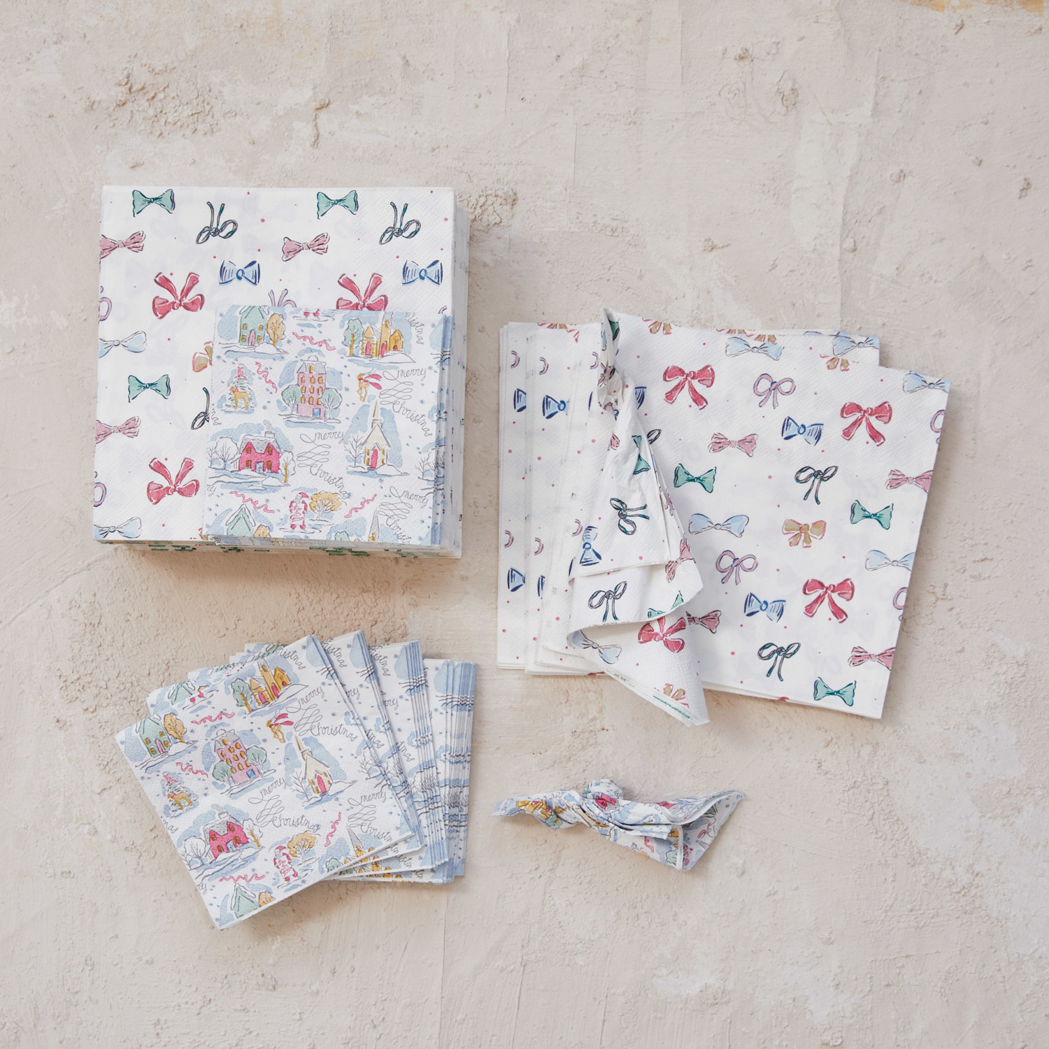 4" Square Paper Cocktail Napkins w/ Holiday Pattern "Merry Christmas", Multi Color (Contains 50 Folded Pieces) ©