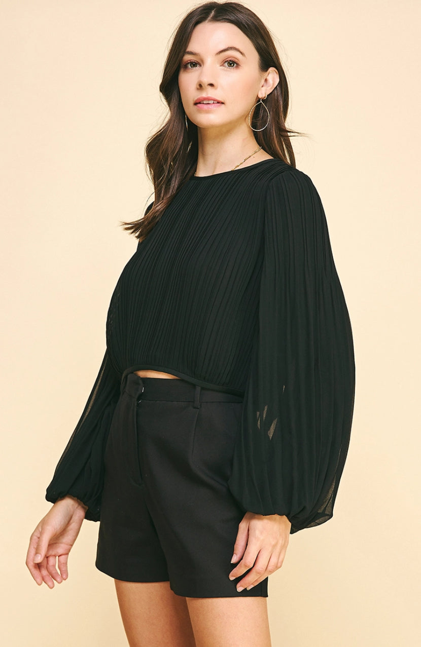 Pleated Woven Top - Black