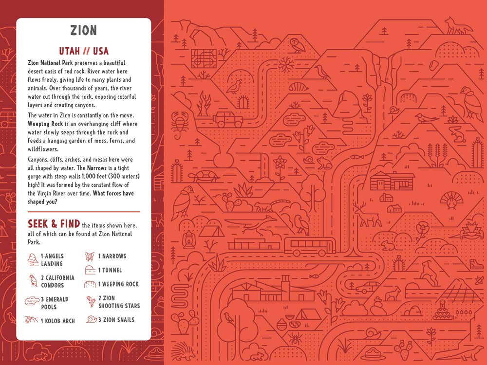 Learn about the plants and animals in nine national parks with fun facts, engaging questions, and intricate illustrations. Explore your world top to bottom with seek & find national parks to learn what makes each park totally unique. See if you can spot the recurring shapes hidden throughout the illustrations, such as bighorn sheep, american black bears, and giant sequoias. Seek and find these animals and plants, and many more in their national park homes. A helpful glossary provides details for further discovery. National parks featured include: acadia (maine), banff (alberta), crater lake (oregon), the great smoky mountains (tennessee/north carolina), thousand islands (ontario), us virgin islands, yellowstone (wyoming/montana/idaho), yosemite (california), and zion (utah). Hardcover 32pgs /science & nature/earth science By utah artist jorrien peterson one half of the husband/wife design duo fell, focusing on design with a sense of place.