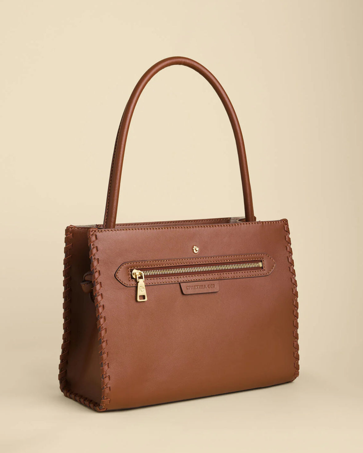 Made from premium, natural grain saddle leather, our Siren Raya Tote boasts a stylish whipstitch detail along the exterior. Made for fashionable function, Raya features a zipper pocket along the front exterior and a slip pocket on the back. Inside its zipper top, you'll find 2 slip pockets and 1 zip pocket in this medium size tote.