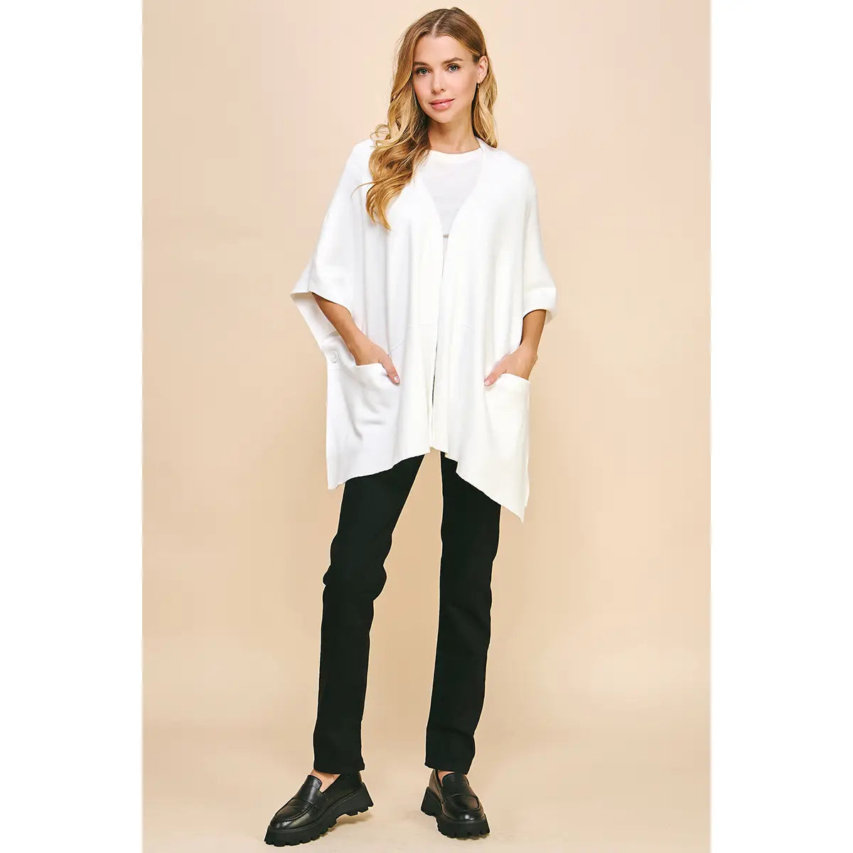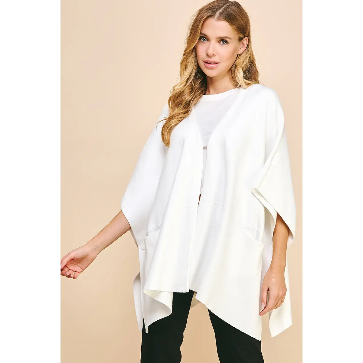Sweater Cape/Poncho with Side Button - Off White