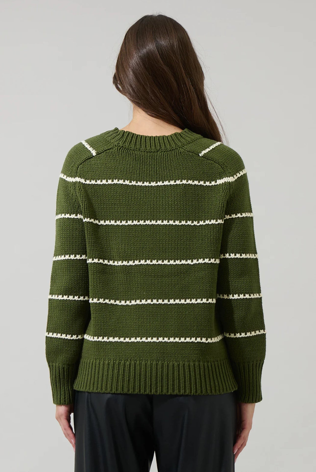 Elevate your essentials with a sweater that works for any occasion. Crafted with a striped design, crewneck, long sleeves, and a shrunken fit, it’s accented by ribbed trim cuffs for a clean finish. Team it with wide leg pants, sneakers, and a minimalist tote for an effortless vibe.