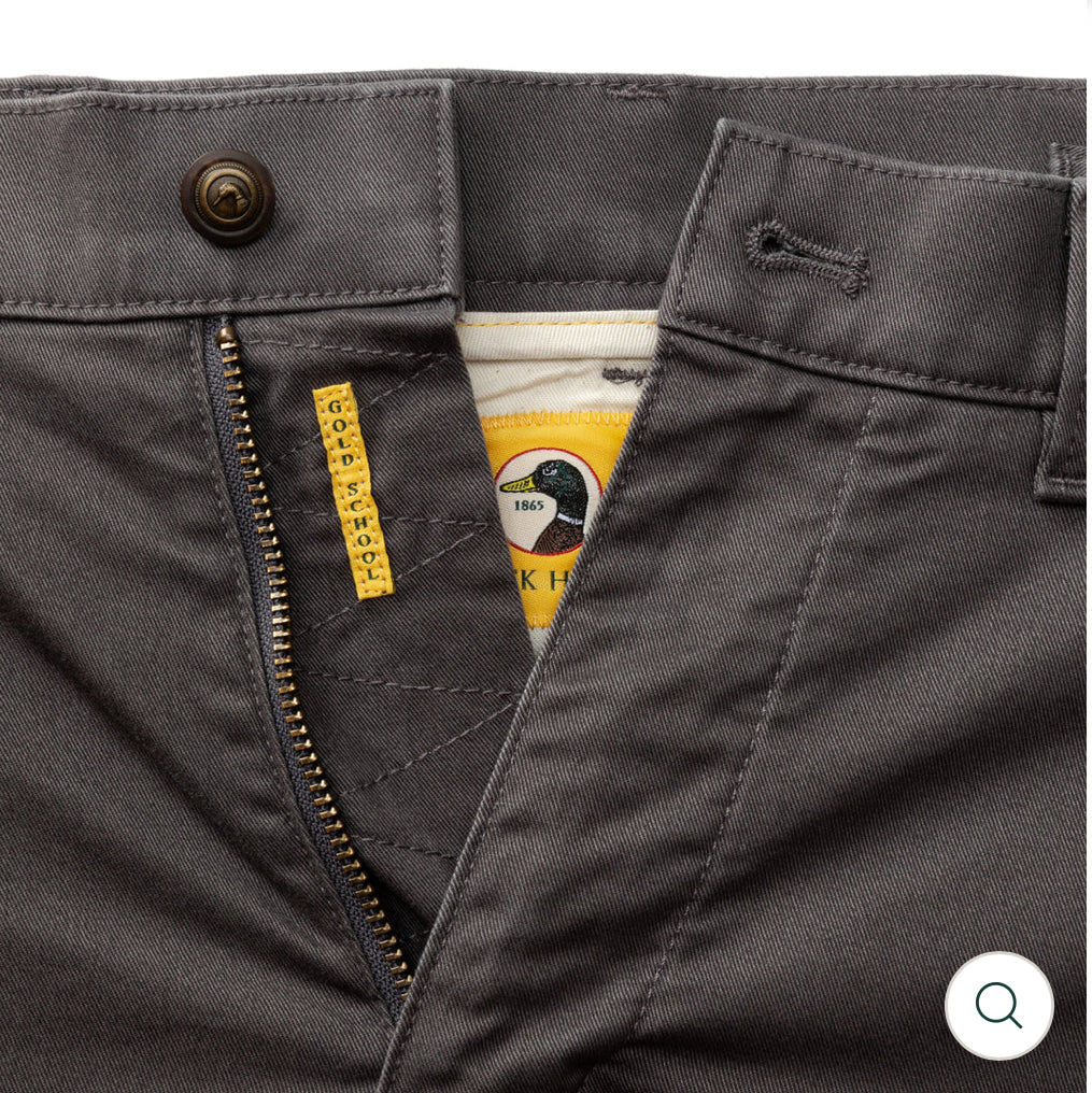 Our “Gold School Chino” is today’s version of what brand savvy college students “discovered” over 25 years ago. Not overthought or overstated, today’s Duck Head remains true to its humble roots by producing garments of enduring quality, functionality, and value without compromise. Made from 7.5 oz. cotton rich twill and equipped with deep drill cloth pockets and industrial grade brass zipper, our design philosophy grows from a belief that the whole is greater than the sum of its parts.
