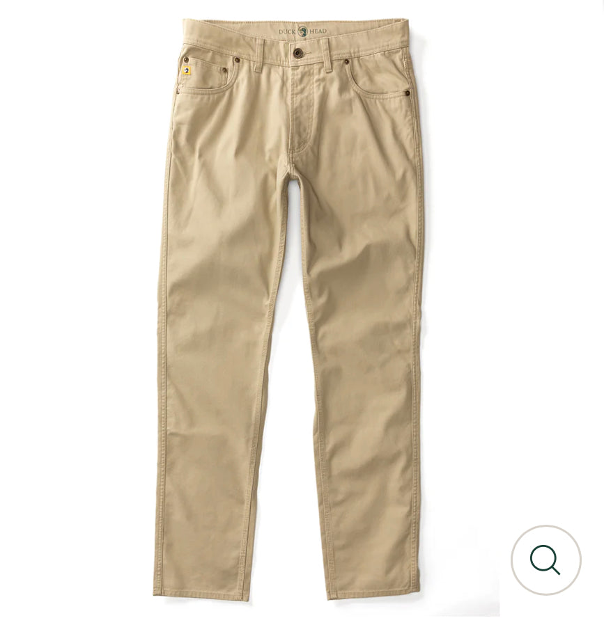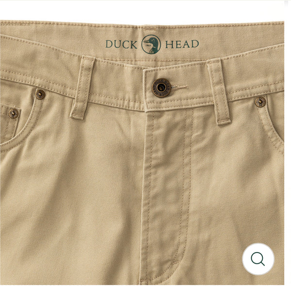 Our Field Canvas Five-Pocket taps Duck Head's rich 150-year history in both spirit and design. Familiar are the signature details borrowed from our Gold School Chino to include branded buttons, leather patches, and fortifying tacks. The 9.4 oz canvas functions with 2% flex through key stress points while being slightly heavier than our traditional 7.1 oz Pinpoint Canvas Five-Pocket. A proprietary fabrication assists in regulating the temperature of the wearer by keeping cool in the heat but warm during cooler temperatures. The classic fit mirrors the Gold School Chino and wears perfectly with a boot, shoe, or loafer.