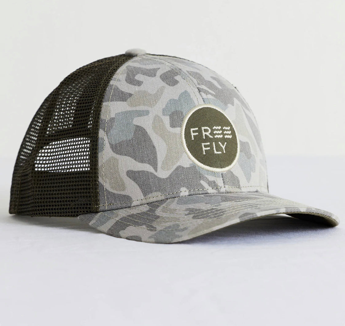 This Camo Trucker Hat offers hardwearing sun protection—a rugged take on our classic snapback style meant for you to wear the hell out of. Outfitted with two custom camo designs: one inspired by the shapes of South Carolina’s barrier islands, and the other takes after our favorite tidal blues.